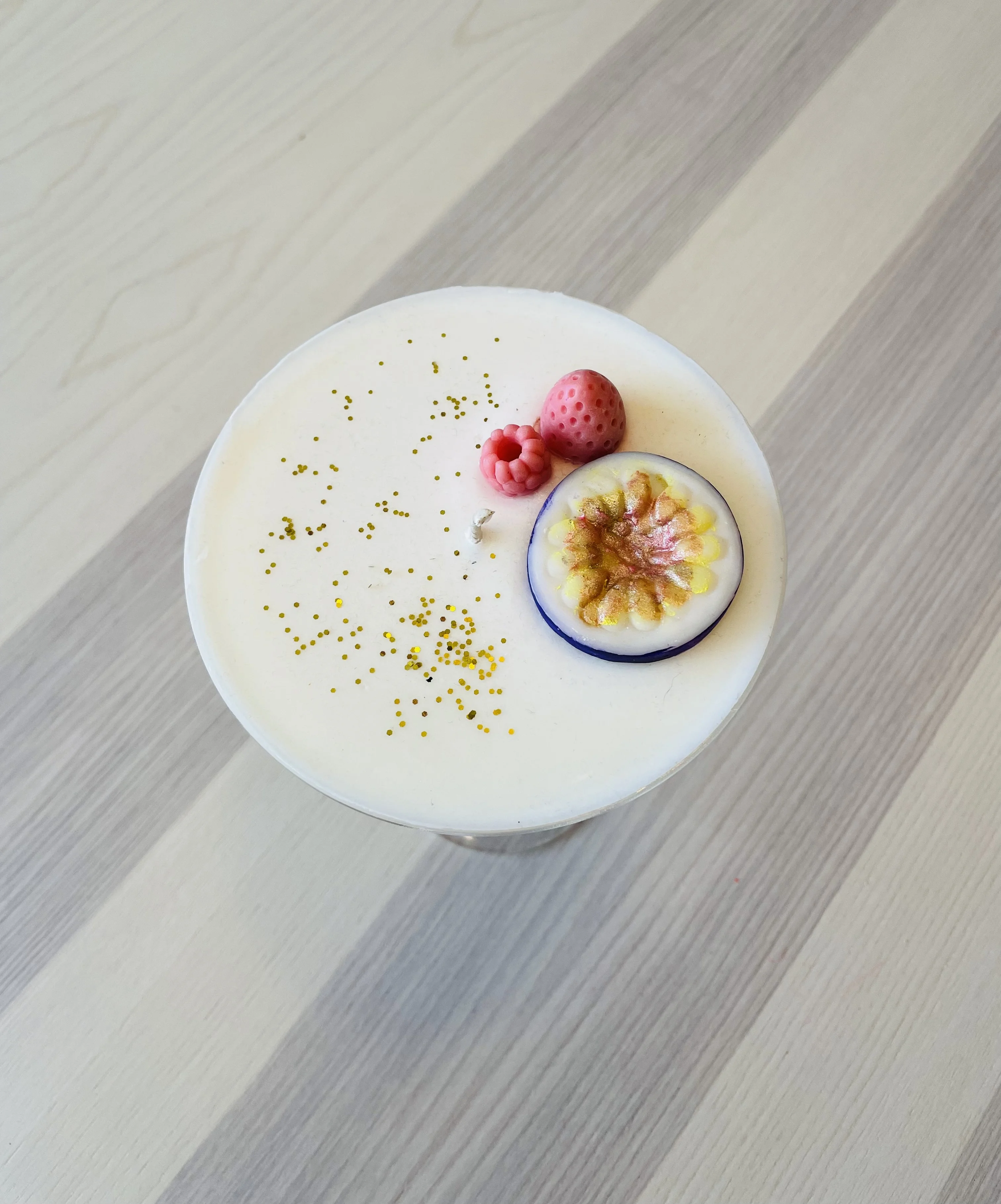 Door met hete was te werken maak je een mooie eerste laag. Je kiest een tweede kleur en dit wordt je ‘schuimlaag’. Maak de cocktailkaars af met leuke decoratie bovenop en glitters.