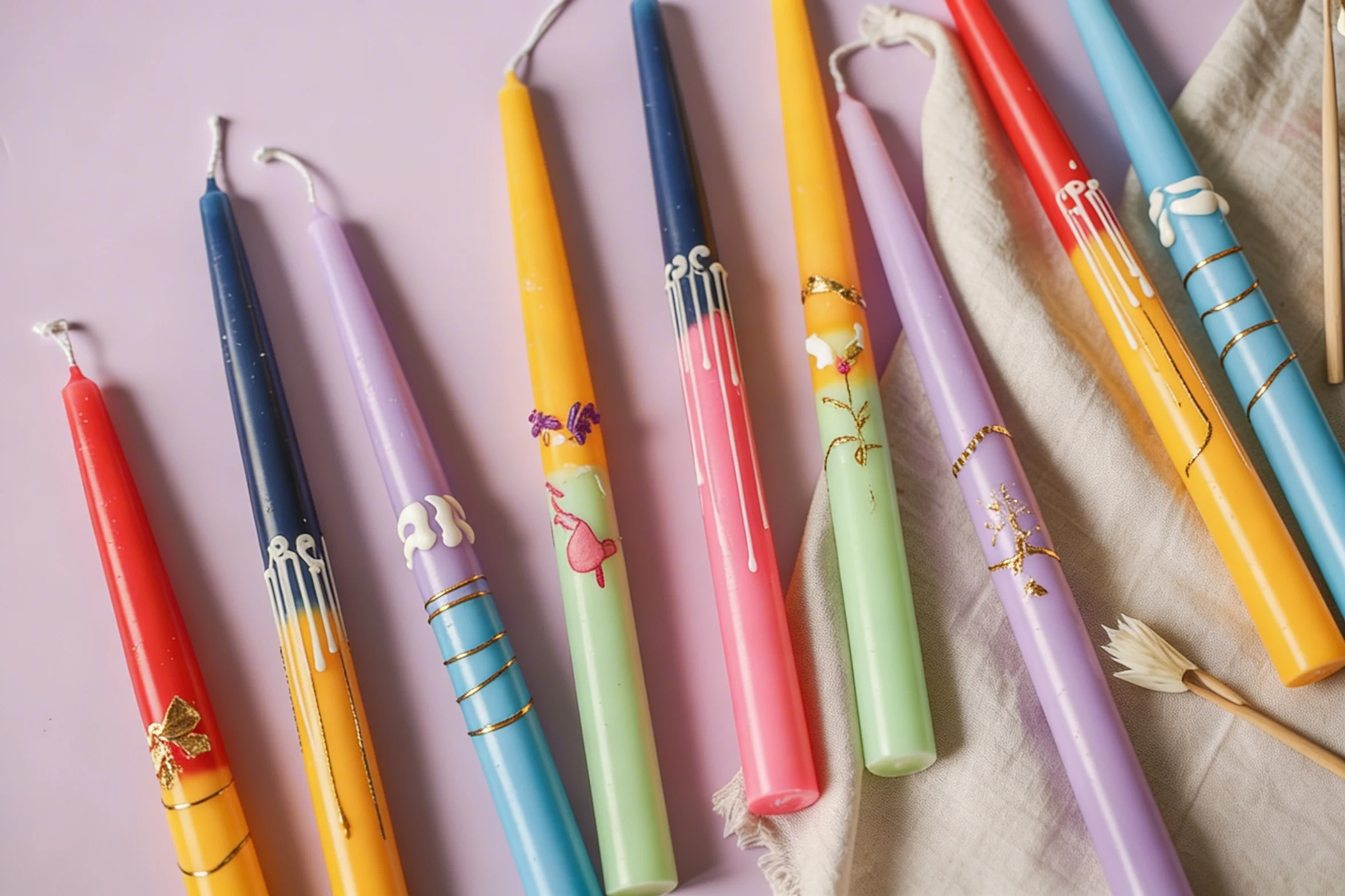 Je kunt verschillende technieken gebruiken zoals meerdere lagen over elkaar dippen in allerlei kleuren, d.m.v. een marble techniek kun je mooie swirl kaarsen maken. Ook kun glitters op je kaars plakken, en tekenen met speciale stiften.
